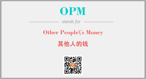 以上为Other People\'s Money英文缩略词OPM的中文解释,以及该英文缩写在英语的流行度、分类和应用领域方面的信息。