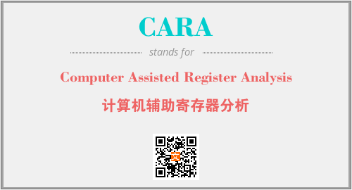 上述内容是“Computer Assisted Register Analysis”作为“CARA”的缩写,解释为“计算机辅助寄存器分析”时的信息,以及英文缩略词CARA所代表的英文单词,其对应的中文拼音、详细解释以及在英文中的流行度和相关分类、应用领域及应用示例等。