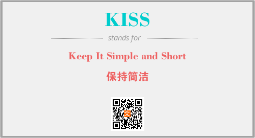 以上为Keep It Simple and Short英文缩略词KISS的中文解释,以及该英文缩写在英语的流行度、分类和应用领域方面的信息。