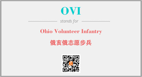 上述内容是“Ohio Volunteer Infantry”作为“OVI”的缩写,解释为“俄亥俄志愿步兵”时的信息,以及英文缩略词OVI所代表的英文单词,其对应的中文拼音、详细解释以及在英文中的流行度和相关分类、应用领域及应用示例等。