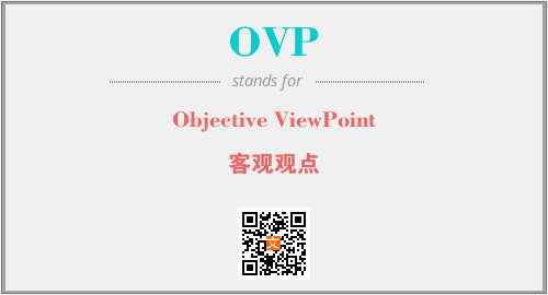 英文缩略词“OVP”经常作为“Objective ViewPoint”的英文缩写来使用,中文表示:“客观观点”。本文将详细介绍英文缩写词OVP所代表英文单词,其对应的中文拼音、详细解释以及在英语中的流行度。此外,还有关于缩略词OVP的分类、应用领域及相关应用示例等。