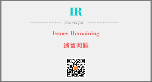 上述内容是“Issues Remaining”作为“IR”的缩写,解释为“遗留问题”时的信息,以及英文缩略词IR所代表的英文单词,其对应的中文拼音、详细解释以及在英文中的流行度和相关分类、应用领域及应用示例等。
