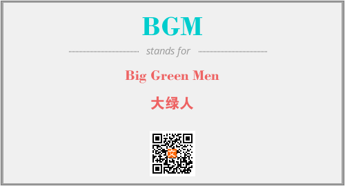 英文缩略词“BGM”经常作为“Big Green Men”的英文缩写来使用,中文表示:“大绿人”。本文将详细介绍英文缩写词BGM所代表英文单词,其对应的中文拼音、详细解释以及在英语中的流行度。此外,还有关于缩略词BGM的分类、应用领域及相关应用示例等。