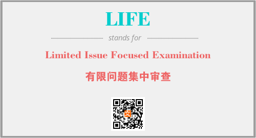 以上为Limited Issue Focused Examination英文缩略词LIFE的中文解释,以及该英文缩写在英语的流行度、分类和应用领域方面的信息。