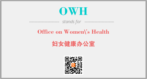 上述内容是“Office on Women\'s Health”作为“OWH”的缩写,解释为“妇女健康办公室”时的信息,以及英文缩略词OWH所代表的英文单词,其对应的中文拼音、详细解释以及在英文中的流行度和相关分类、应用领域及应用示例等。