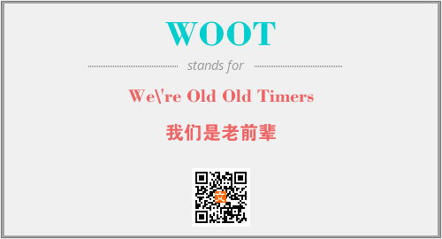 以上为We\'re Old Old Timers英文缩略词WOOT的中文解释,以及该英文缩写在英语的流行度、分类和应用领域方面的信息。
