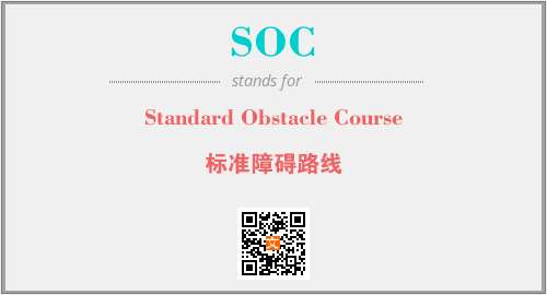上述内容是“Standard Obstacle Course”作为“SOC”的缩写,解释为“标准障碍路线”时的信息,以及英文缩略词SOC所代表的英文单词,其对应的中文拼音、详细解释以及在英文中的流行度和相关分类、应用领域及应用示例等。