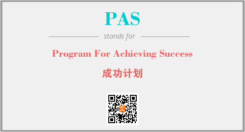 英文缩略词“PAS”经常作为“Program For Achieving Success”的英文缩写来使用,中文表示:“成功计划”。本文将详细介绍英文缩写词PAS所代表英文单词,其对应的中文拼音、详细解释以及在英语中的流行度。此外,还有关于缩略词PAS的分类、应用领域及相关应用示例等。