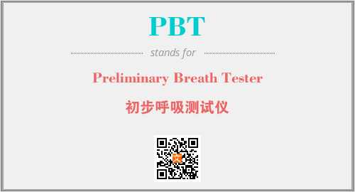 英文缩略词“PBT”经常作为“Preliminary Breath Tester”的英文缩写来使用,中文表示:“初步呼吸测试仪”。本文将详细介绍英文缩写词PBT所代表英文单词,其对应的中文拼音、详细解释以及在英语中的流行度。此外,还有关于缩略词PBT的分类、应用领域及相关应用示例等。