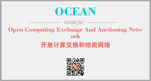 上述内容是“Open Computing Exchange And Auctioning Network”作为“OCEAN”的缩写,解释为“开放计算交换和拍卖网络”时的信息,以及英文缩略词OCEAN所代表的英文单词,其对应的中文拼音、详细解释以及在英文中的流行度和相关分类、应用领域及应用示例等。