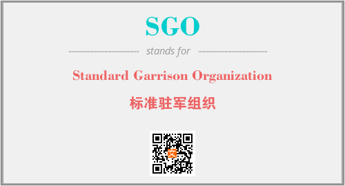 以上为Standard Garrison Organization英文缩略词SGO的中文解释,以及该英文缩写在英语的流行度、分类和应用领域方面的信息。