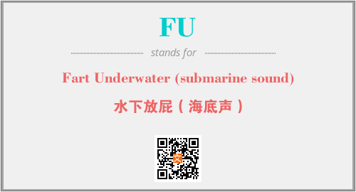 上述内容是“Fart Underwater (submarine sound)”作为“FU”的缩写,解释为“水下放屁(海底声)”时的信息,以及英文缩略词FU所代表的英文单词,其对应的中文拼音、详细解释以及在英文中的流行度和相关分类、应用领域及应用示例等。