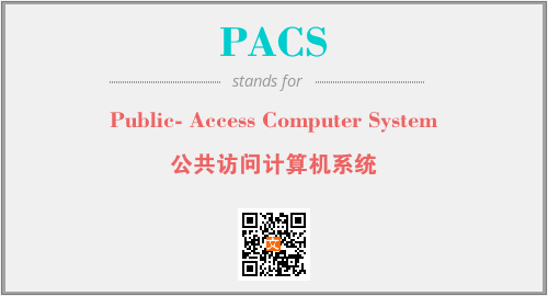 英文缩略词“PACS”经常作为“Public- Access Computer System”的英文缩写来使用,中文表示:“公共访问计算机系统”。本文将详细介绍英文缩写词PACS所代表英文单词,其对应的中文拼音、详细解释以及在英语中的流行度。此外,还有关于缩略词PACS的分类、应用领域及相关应用示例等。