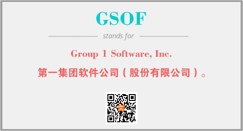 上述内容是“Group 1 Software, Inc.”作为“GSOF”的缩写,解释为“第一集团软件公司(股份有限公司)。”时的信息,以及英文缩略词GSOF所代表的英文单词,其对应的中文拼音、详细解释以及在英文中的流行度和相关分类、应用领域及应用示例等。
