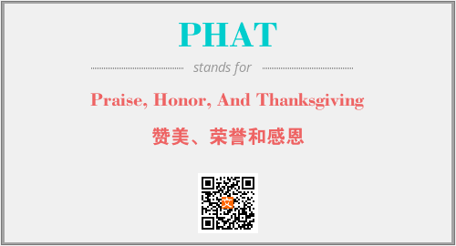 上述内容是“Praise, Honor, And Thanksgiving”作为“PHAT”的缩写,解释为“赞美、荣誉和感恩”时的信息,以及英文缩略词PHAT所代表的英文单词,其对应的中文拼音、详细解释以及在英文中的流行度和相关分类、应用领域及应用示例等。