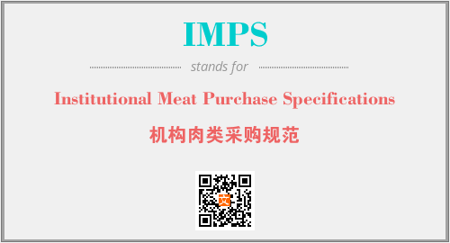 英文缩略词“IMPS”经常作为“Institutional Meat Purchase Specifications”的英文缩写来使用,中文表示:“机构肉类采购规范”。本文将详细介绍英文缩写词IMPS所代表英文单词,其对应的中文拼音、详细解释以及在英语中的流行度。此外,还有关于缩略词IMPS的分类、应用领域及相关应用示例等。