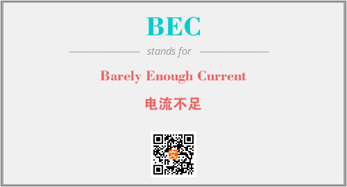 英文缩略词“BEC”经常作为“Barely Enough Current”的英文缩写来使用,中文表示:“电流不足”。本文将详细介绍英文缩写词BEC所代表英文单词,其对应的中文拼音、详细解释以及在英语中的流行度。此外,还有关于缩略词BEC的分类、应用领域及相关应用示例等。