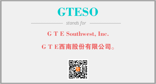 上述内容是“G T E Southwest, Inc.”作为“GTESO”的缩写,解释为“G T E西南股份有限公司。”时的信息,以及英文缩略词GTESO所代表的英文单词,其对应的中文拼音、详细解释以及在英文中的流行度和相关分类、应用领域及应用示例等。