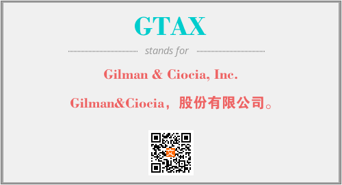 上述内容是“Gilman & Ciocia, Inc.”作为“GTAX”的缩写,解释为“Gilman&Ciocia,股份有限公司。”时的信息,以及英文缩略词GTAX所代表的英文单词,其对应的中文拼音、详细解释以及在英文中的流行度和相关分类、应用领域及应用示例等。