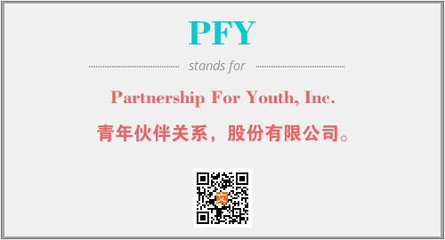 上述内容是“Partnership For Youth, Inc.”作为“PFY”的缩写,解释为“青年伙伴关系,股份有限公司。”时的信息,以及英文缩略词PFY所代表的英文单词,其对应的中文拼音、详细解释以及在英文中的流行度和相关分类、应用领域及应用示例等。