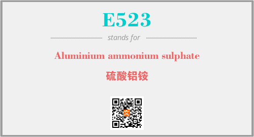 上述内容是“Aluminium ammonium sulphate”作为“E523”的缩写,解释为“硫酸铝铵”时的信息,以及英文缩略词E523所代表的英文单词,其对应的中文拼音、详细解释以及在英文中的流行度和相关分类、应用领域及应用示例等。