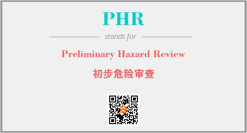上述内容是“Preliminary Hazard Review”作为“PHR”的缩写,解释为“初步危险审查”时的信息,以及英文缩略词PHR所代表的英文单词,其对应的中文拼音、详细解释以及在英文中的流行度和相关分类、应用领域及应用示例等。