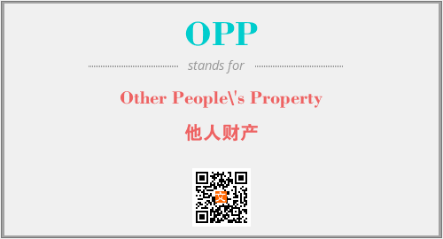 英文缩略词“OPP”经常作为“Other People\'s Property”的英文缩写来使用,中文表示:“他人财产”。本文将详细介绍英文缩写词OPP所代表英文单词,其对应的中文拼音、详细解释以及在英语中的流行度。此外,还有关于缩略词OPP的分类、应用领域及相关应用示例等。