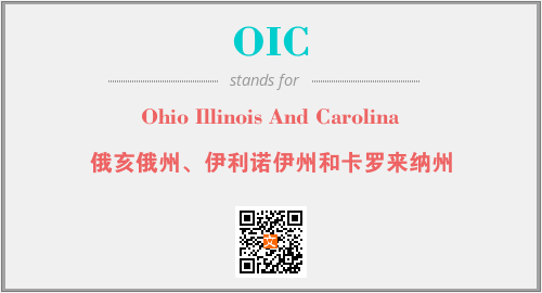 上述内容是“Ohio Illinois And Carolina”作为“OIC”的缩写,解释为“俄亥俄州、伊利诺伊州和卡罗来纳州”时的信息,以及英文缩略词OIC所代表的英文单词,其对应的中文拼音、详细解释以及在英文中的流行度和相关分类、应用领域及应用示例等。