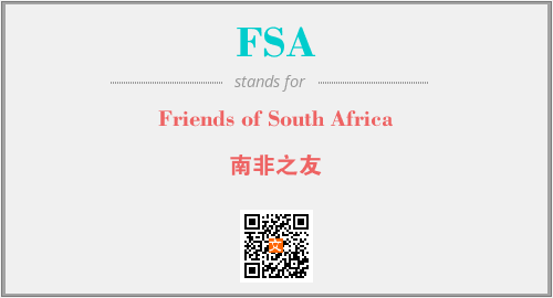 英文缩略词“FSA”经常作为“Friends of South Africa”的英文缩写来使用,中文表示:“南非之友”。本文将详细介绍英文缩写词FSA所代表英文单词,其对应的中文拼音、详细解释以及在英语中的流行度。此外,还有关于缩略词FSA的分类、应用领域及相关应用示例等。