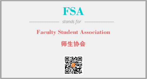 上述内容是“Faculty Student Association”作为“FSA”的缩写,解释为“师生协会”时的信息,以及英文缩略词FSA所代表的英文单词,其对应的中文拼音、详细解释以及在英文中的流行度和相关分类、应用领域及应用示例等。
