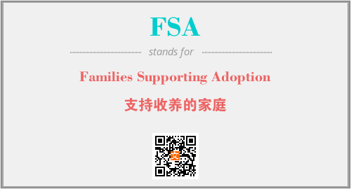 上述内容是“Families Supporting Adoption”作为“FSA”的缩写,解释为“支持收养的家庭”时的信息,以及英文缩略词FSA所代表的英文单词,其对应的中文拼音、详细解释以及在英文中的流行度和相关分类、应用领域及应用示例等。