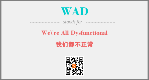 以上为We\'re All Dysfunctional英文缩略词WAD的中文解释,以及该英文缩写在英语的流行度、分类和应用领域方面的信息。