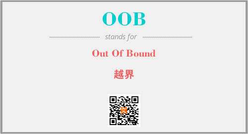 英文缩略词“OOB”经常作为“Out Of Bound”的英文缩写来使用,中文表示:“越界”。本文将详细介绍英文缩写词OOB所代表英文单词,其对应的中文拼音、详细解释以及在英语中的流行度。此外,还有关于缩略词OOB的分类、应用领域及相关应用示例等。