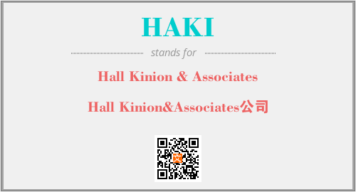 上述内容是“Hall Kinion & Associates”作为“HAKI”的缩写,解释为“Hall Kinion&Associates公司”时的信息,以及英文缩略词HAKI所代表的英文单词,其对应的中文拼音、详细解释以及在英文中的流行度和相关分类、应用领域及应用示例等。