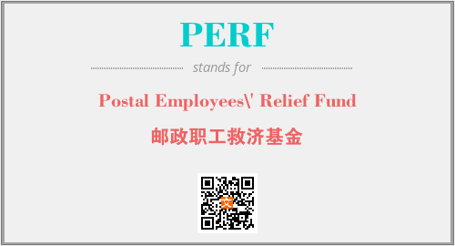 上述内容是“Postal Employees\' Relief Fund”作为“PERF”的缩写,解释为“邮政职工救济基金”时的信息,以及英文缩略词PERF所代表的英文单词,其对应的中文拼音、详细解释以及在英文中的流行度和相关分类、应用领域及应用示例等。