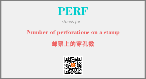 上述内容是“Number of perforations on a stamp”作为“PERF”的缩写,解释为“邮票上的穿孔数”时的信息,以及英文缩略词PERF所代表的英文单词,其对应的中文拼音、详细解释以及在英文中的流行度和相关分类、应用领域及应用示例等。