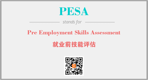以上为Pre Employment Skills Assessment英文缩略词PESA的中文解释,以及该英文缩写在英语的流行度、分类和应用领域方面的信息。