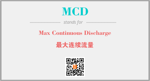上述内容是“Max Continuous Discharge”作为“MCD”的缩写,解释为“最大连续流量”时的信息,以及英文缩略词MCD所代表的英文单词,其对应的中文拼音、详细解释以及在英文中的流行度和相关分类、应用领域及应用示例等。