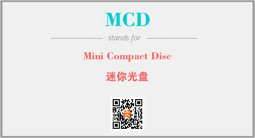 上述内容是“Mini Compact Disc”作为“MCD”的缩写,解释为“迷你光盘”时的信息,以及英文缩略词MCD所代表的英文单词,其对应的中文拼音、详细解释以及在英文中的流行度和相关分类、应用领域及应用示例等。