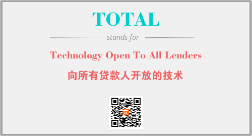 上述内容是“Technology Open To All Lenders”作为“TOTAL”的缩写,解释为“向所有贷款人开放的技术”时的信息,以及英文缩略词TOTAL所代表的英文单词,其对应的中文拼音、详细解释以及在英文中的流行度和相关分类、应用领域及应用示例等。