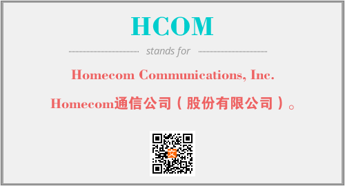 上述内容是“Homecom Communications, Inc.”作为“HCOM”的缩写,解释为“Homecom通信公司(股份有限公司)。”时的信息,以及英文缩略词HCOM所代表的英文单词,其对应的中文拼音、详细解释以及在英文中的流行度和相关分类、应用领域及应用示例等。