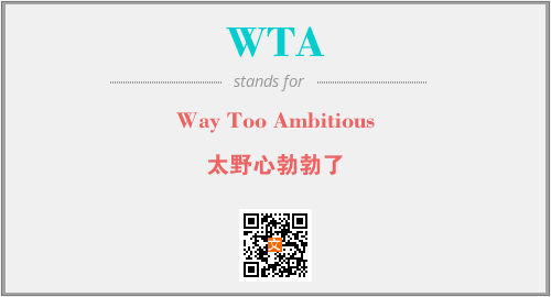 以上为Way Too Ambitious英文缩略词WTA的中文解释,以及该英文缩写在英语的流行度、分类和应用领域方面的信息。