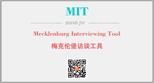 上述内容是“Mecklenburg Interviewing Tool”作为“MIT”的缩写,解释为“梅克伦堡访谈工具”时的信息,以及英文缩略词MIT所代表的英文单词,其对应的中文拼音、详细解释以及在英文中的流行度和相关分类、应用领域及应用示例等。