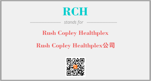 上述内容是“Rush Copley Healthplex”作为“RCH”的缩写,解释为“Rush Copley Healthplex公司”时的信息,以及英文缩略词RCH所代表的英文单词,其对应的中文拼音、详细解释以及在英文中的流行度和相关分类、应用领域及应用示例等。