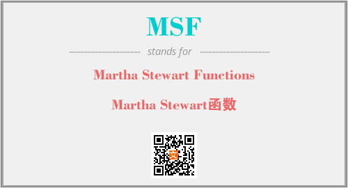 上述内容是“Martha Stewart Functions”作为“MSF”的缩写,解释为“Martha Stewart函数”时的信息,以及英文缩略词MSF所代表的英文单词,其对应的中文拼音、详细解释以及在英文中的流行度和相关分类、应用领域及应用示例等。