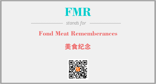 英文缩略词“FMR”经常作为“Fond Meat Rememberances”的英文缩写来使用,中文表示:“美食纪念”。本文将详细介绍英文缩写词FMR所代表英文单词,其对应的中文拼音、详细解释以及在英语中的流行度。此外,还有关于缩略词FMR的分类、应用领域及相关应用示例等。
