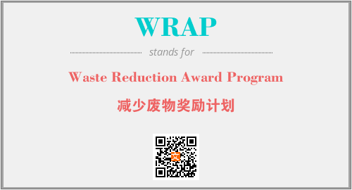 上述内容是“Waste Reduction Award Program”作为“WRAP”的缩写,解释为“减少废物奖励计划”时的信息,以及英文缩略词WRAP所代表的英文单词,其对应的中文拼音、详细解释以及在英文中的流行度和相关分类、应用领域及应用示例等。