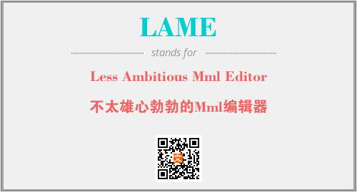 上述内容是“Less Ambitious Mml Editor”作为“LAME”的缩写,解释为“不太雄心勃勃的Mml编辑器”时的信息,以及英文缩略词LAME所代表的英文单词,其对应的中文拼音、详细解释以及在英文中的流行度和相关分类、应用领域及应用示例等。