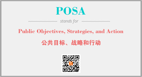 上述内容是“Public Objectives, Strategies, and Action”作为“POSA”的缩写,解释为“公共目标、战略和行动”时的信息,以及英文缩略词POSA所代表的英文单词,其对应的中文拼音、详细解释以及在英文中的流行度和相关分类、应用领域及应用示例等。
