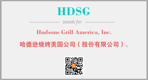 上述内容是“Hudsons Grill America, Inc.”作为“HDSG”的缩写,解释为“哈德逊烧烤美国公司(股份有限公司)。”时的信息,以及英文缩略词HDSG所代表的英文单词,其对应的中文拼音、详细解释以及在英文中的流行度和相关分类、应用领域及应用示例等。